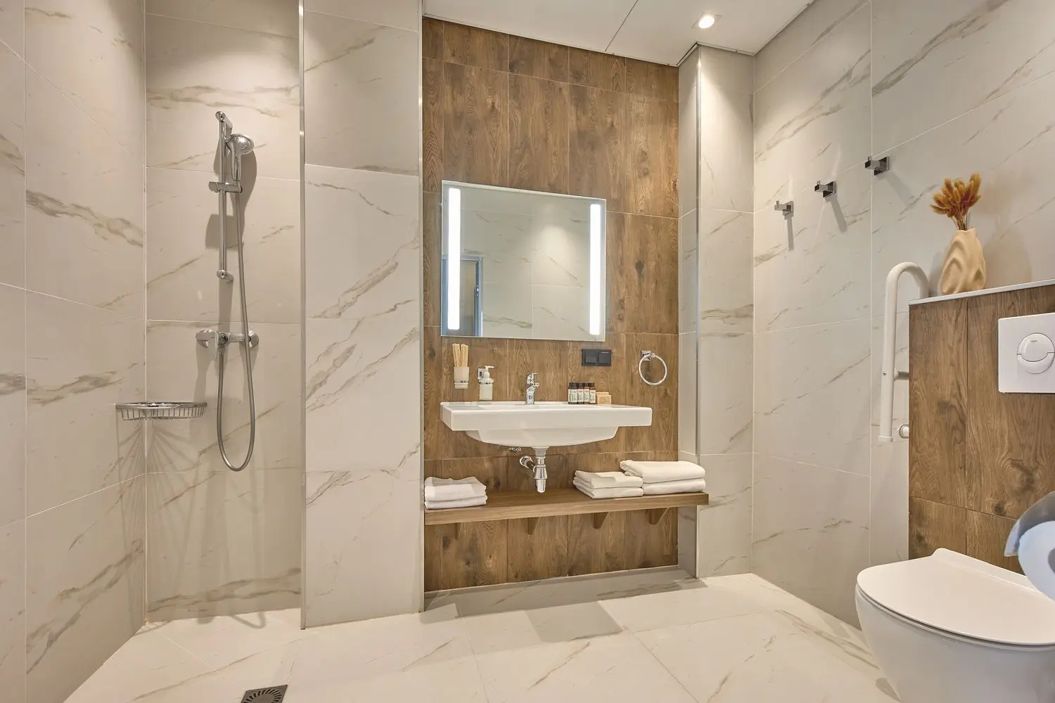Для людей с ограниченными возможностями тоже есть условия. Пандусы, лифты, адаптированные номера. Не во всех спа-отелях об этом думают, а здесь продумали. Потому что право на отдых и оздоровление есть у всех, независимо от физических особенностей.